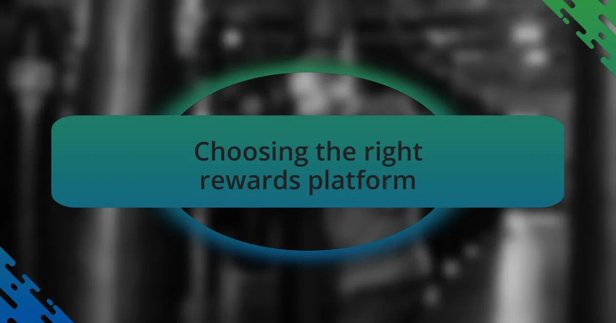 Choosing the right rewards platform can significantly impact your fitness journey. I remember feeling overwhelmed by the choices available; each platform offered something different. It’s essential to assess what aligns best with your personal fitness goals and interests. Do you want rewards that provide tangible items like gym gear, or are you more interested in experiences like fitness classes or health consultations? Choosing wisely makes a big difference in how motivated you feel over time.